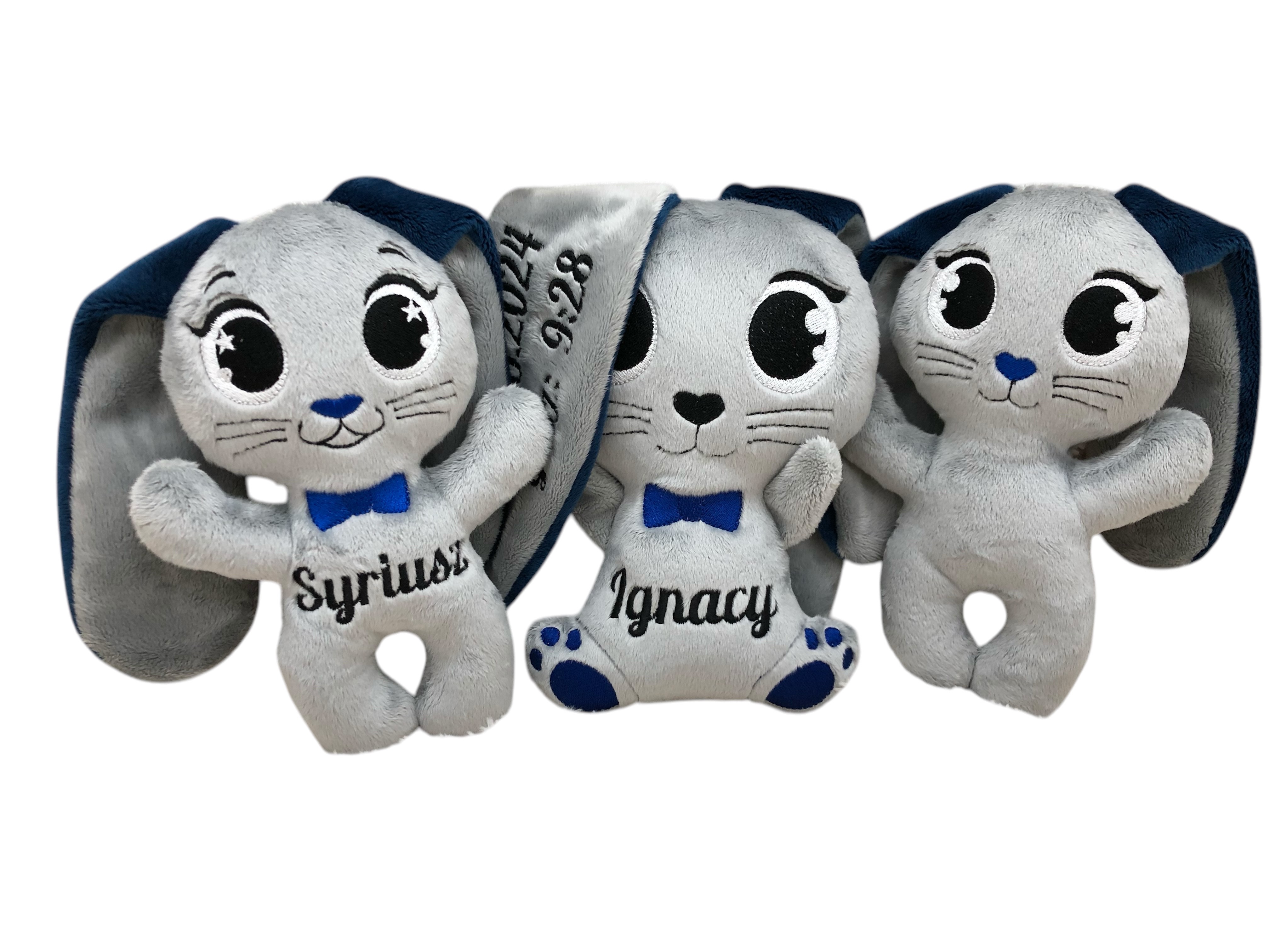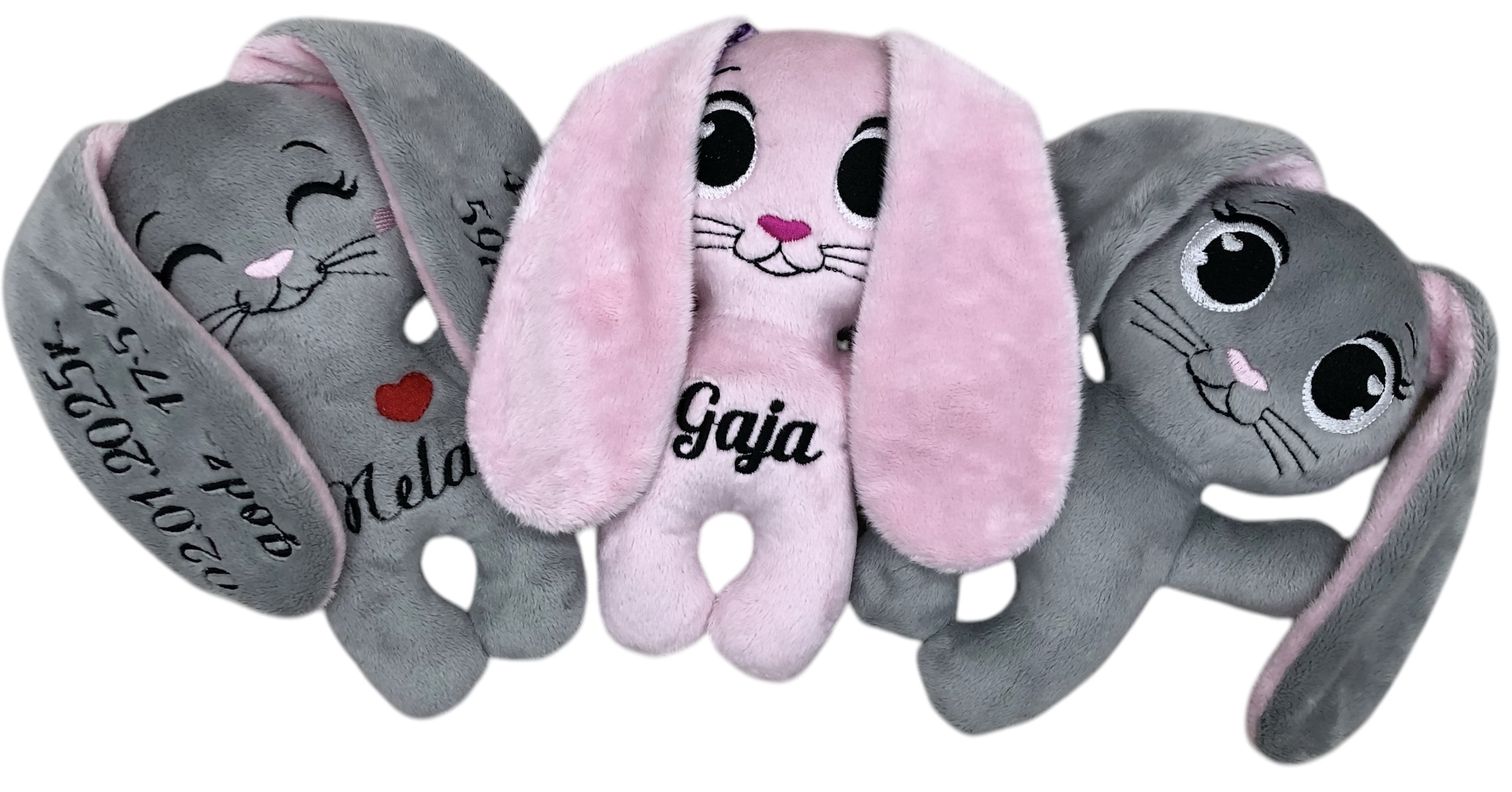 Wyhaftujemy dowolne imię lub tekst na naszych króliczkach, które nadadzą im niepowtarzalny charakter. Dodatkowo, każdy króliczek może posiadać metryczkę z danymi urodzenia, co czyni go idealnym prezentem na roczek, chrzciny czy inne wyjątkowe okazje.