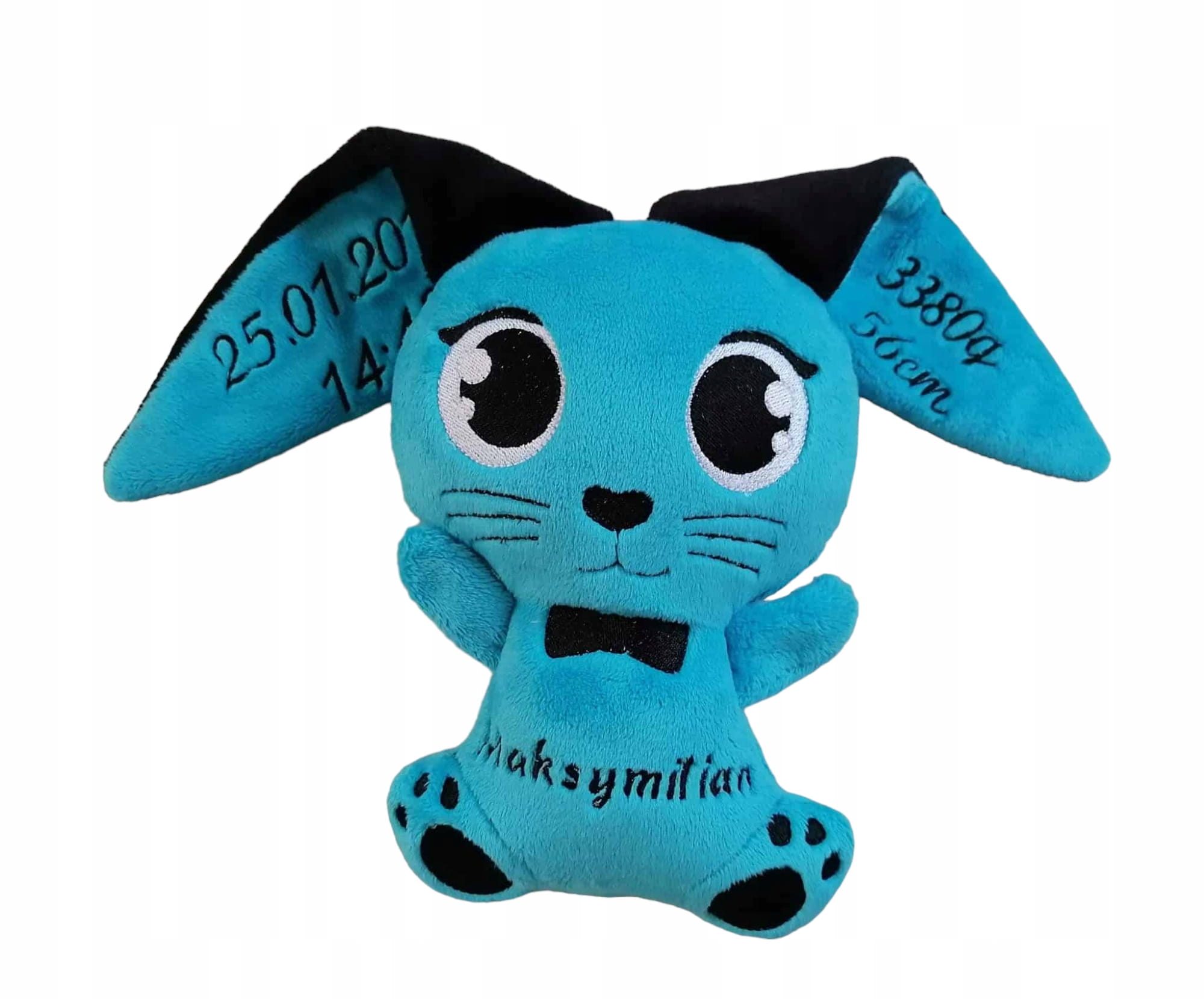 Króliczek jest szyty na zamówienie dla Ciebie z dowolnym imieniem, metryczką, symbolami, znakami zodiaku...