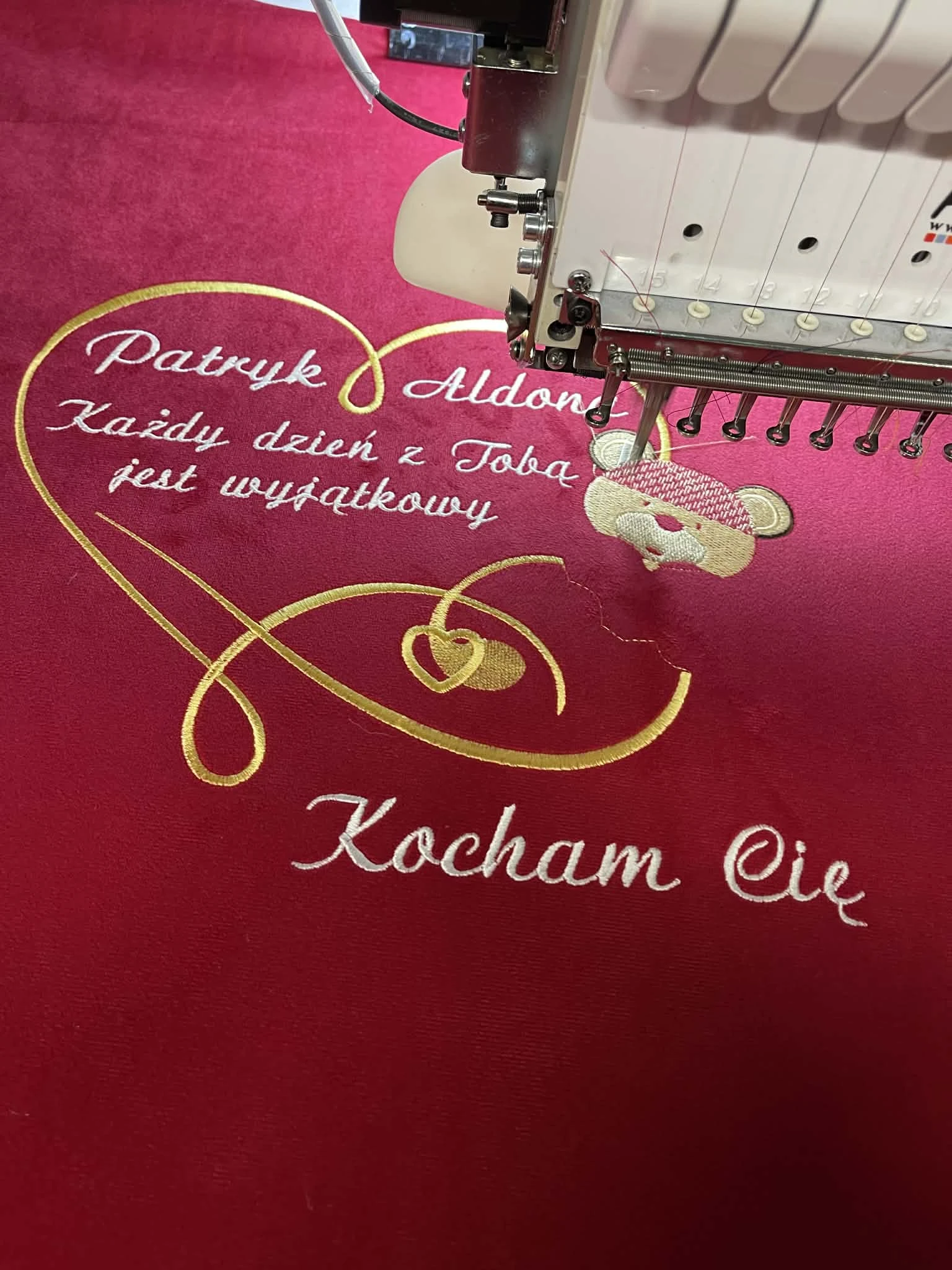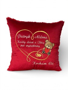 Na poduszce wykonujemy trwały haft z imionami oraz dedykacją, dzięki czemu prezent nabiera osobistego charakteru i staje się piękną pamiątką. Czerwony kolor, motyw serca i romantyczny wzór sprawiają, że poduszka świetnie pasuje jako prezent dla dziewczyny, żony, narzeczonej, chłopaka lub męża.