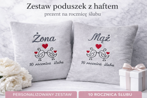 Zestaw 2 poduszek z haftem na rocznicę ślubu – Żona i Mąż, personalizowany prezent