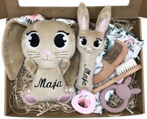 Zestaw prezentowy z personalizacją – pluszak, metryczka, gryzak